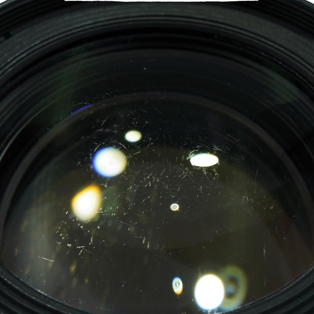 This full frame DSLR macro lens is in decent condition, showing minimal signs of wear and tear. There are prominent scratches across the front element, but are not visible unless significantly stopped down in bright backlit conditions. Optics are otherwise clear of dirt, dust, or fungus. This is a great lens for product and food photography. Includes lens caps and lens hood. SN:74970256