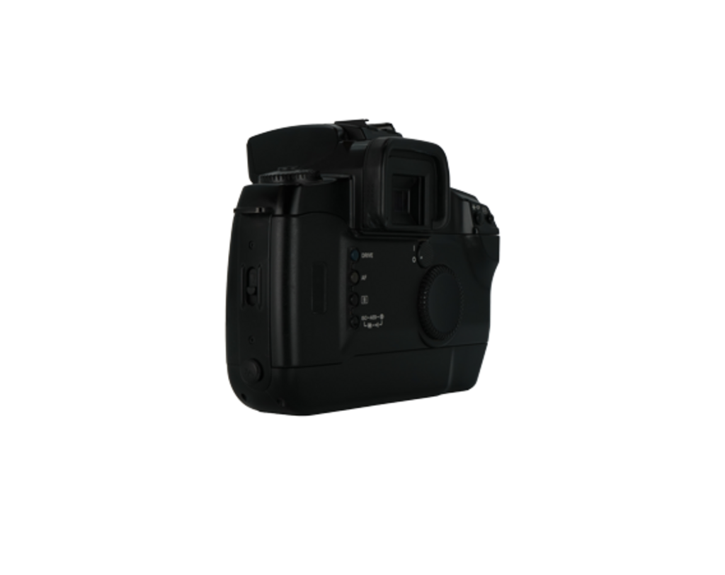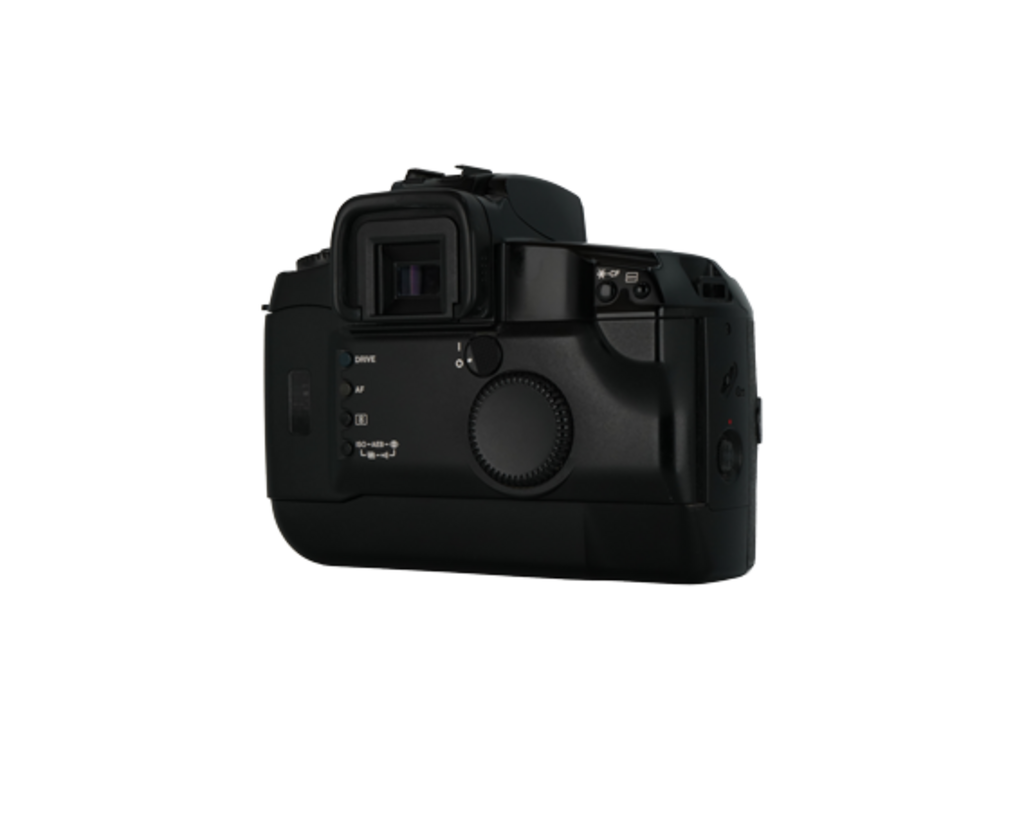 This 35mm film camera is in good condition with minimal signs of wear and tear. The rubber coating on the grip is degrading making it slightly sticky. The rest of the exterior is clean and clear of any significant damage. The auto-advance and rewind function properly. This camera is a great starter film body for someone who is used to shooting on a DSLR as it offer many of the same modes. The EF-mount is compatible with Canon full-frame DSLR lens. Includes: strap and body cap. SN#1035416